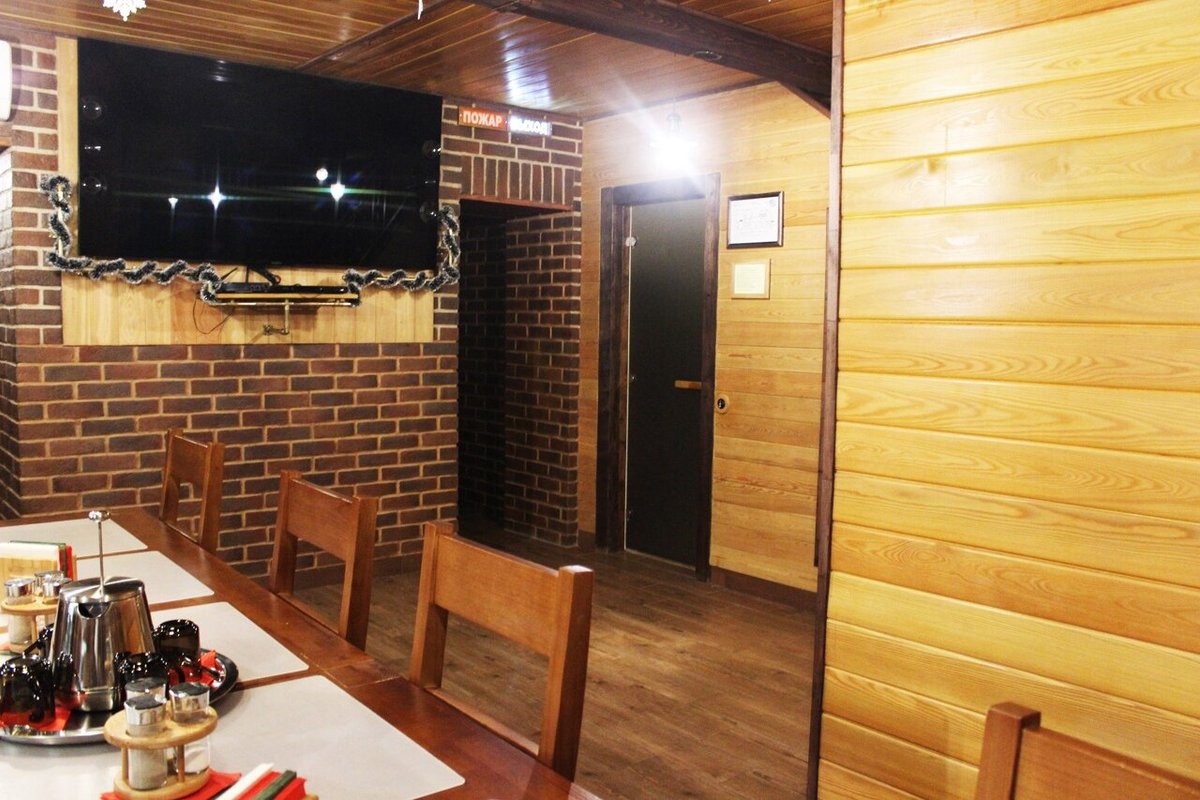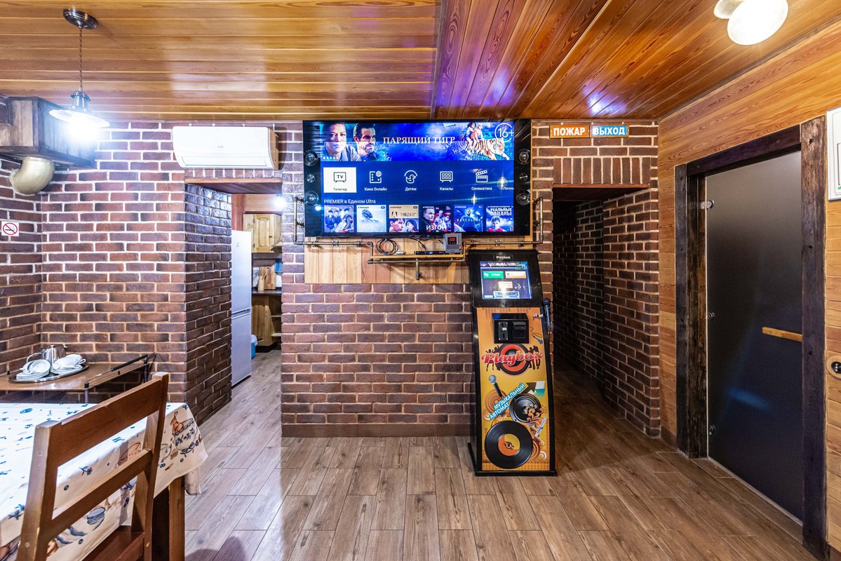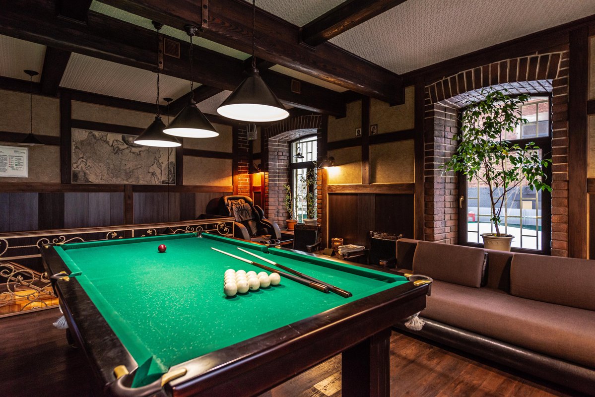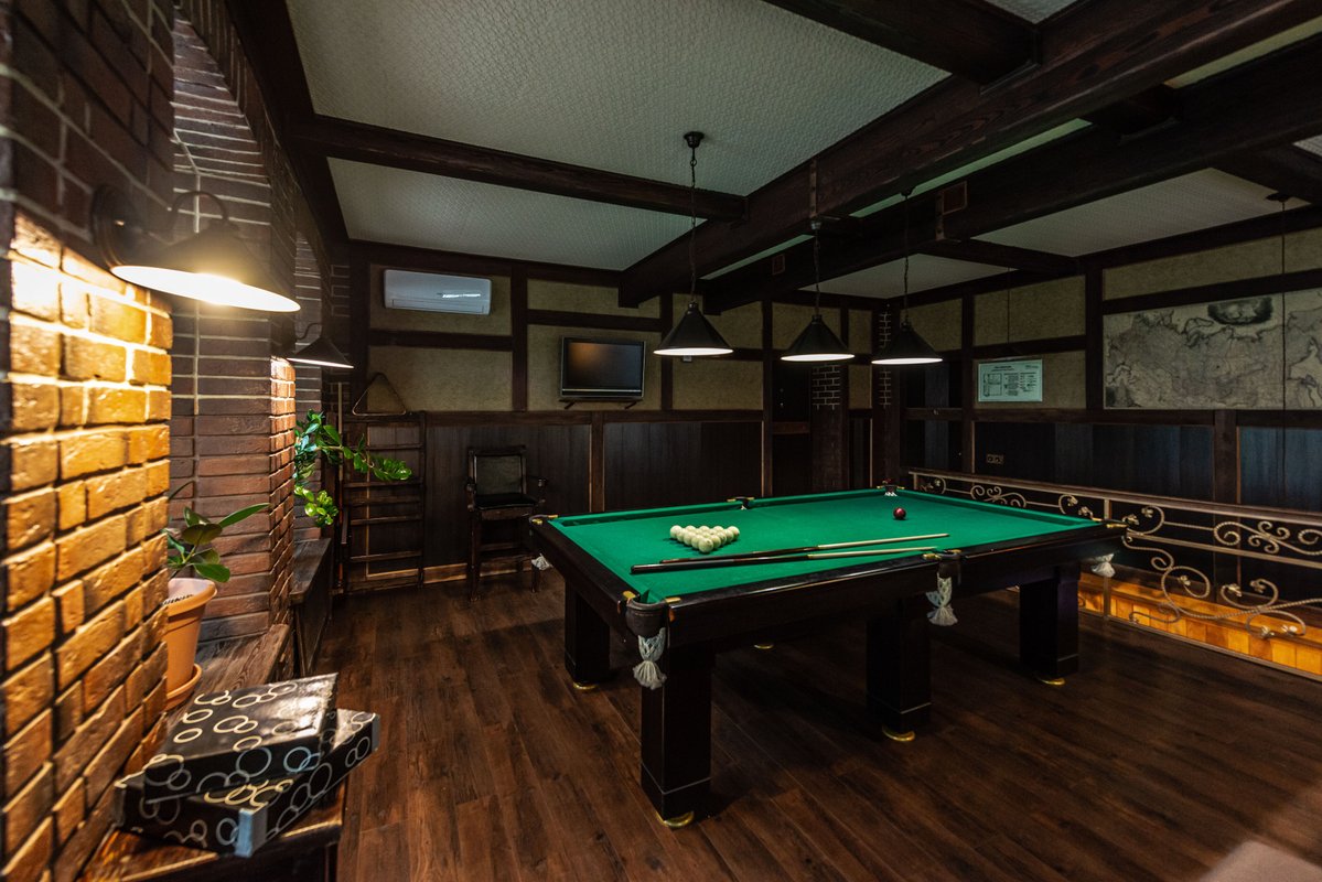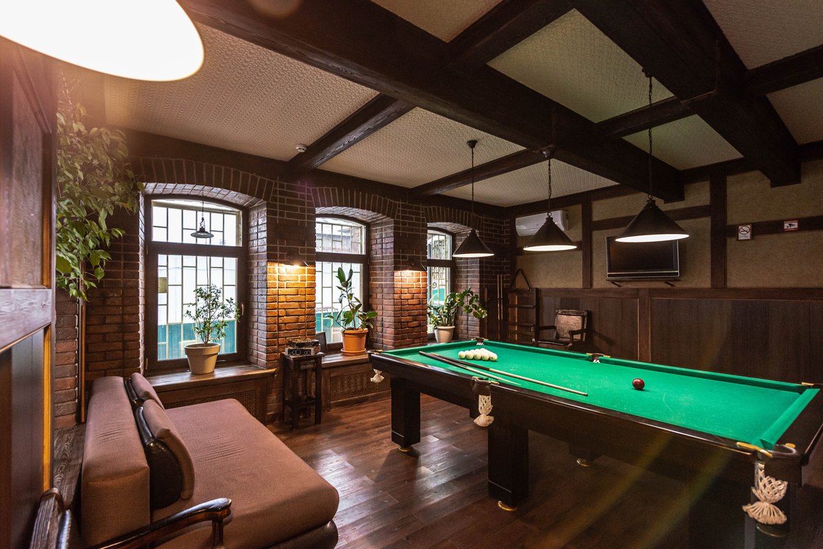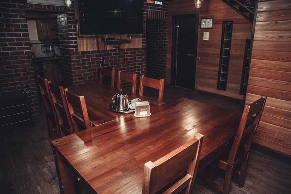 Не хочется в бассейн? Не беда! Вместо этого можно передохнуть в нашей комнате отдыха. Мы ставили своей целью создать здесь уютный, практичный интерьер из преимущественно натуральных, безопасных материалов, подобрать мебель, которая будет в равной степени удобной и эстетичной. Надеемся, что вам понравится! Для поддержания атмосферы отдыха мы можем предложить вам бильярд и караоке. У нас нет собственной кухни, но мы ничего не имеем против, если вы придете со своей едой и совместите посещение бани с небольшим застольем. Главное помните, что плотная трапеза незадолго перед посещением парной - это не самая удачная идея, по мнению докторов. А вот после парной она совсем не повредит!